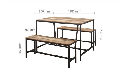 The Urban Dining Table and Bench Set will add a hint of industiral chic to your dining room. The beauty of a table and bench set-up is that you can squeeze plenty of people in, making it perfect for families as well as those who enjoy entertaining. This versatile range is crafted from a metal frame with industrial-effect detail and has a wood-effect finish. Care instructions: Wipe carefully with a soft, dry cloth.